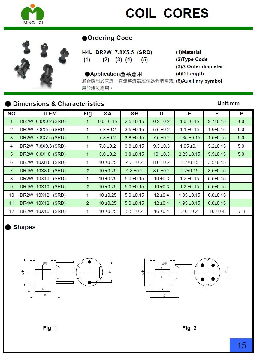 適合應用于DC-DC整流器或作為低階電感、濾波器應用。